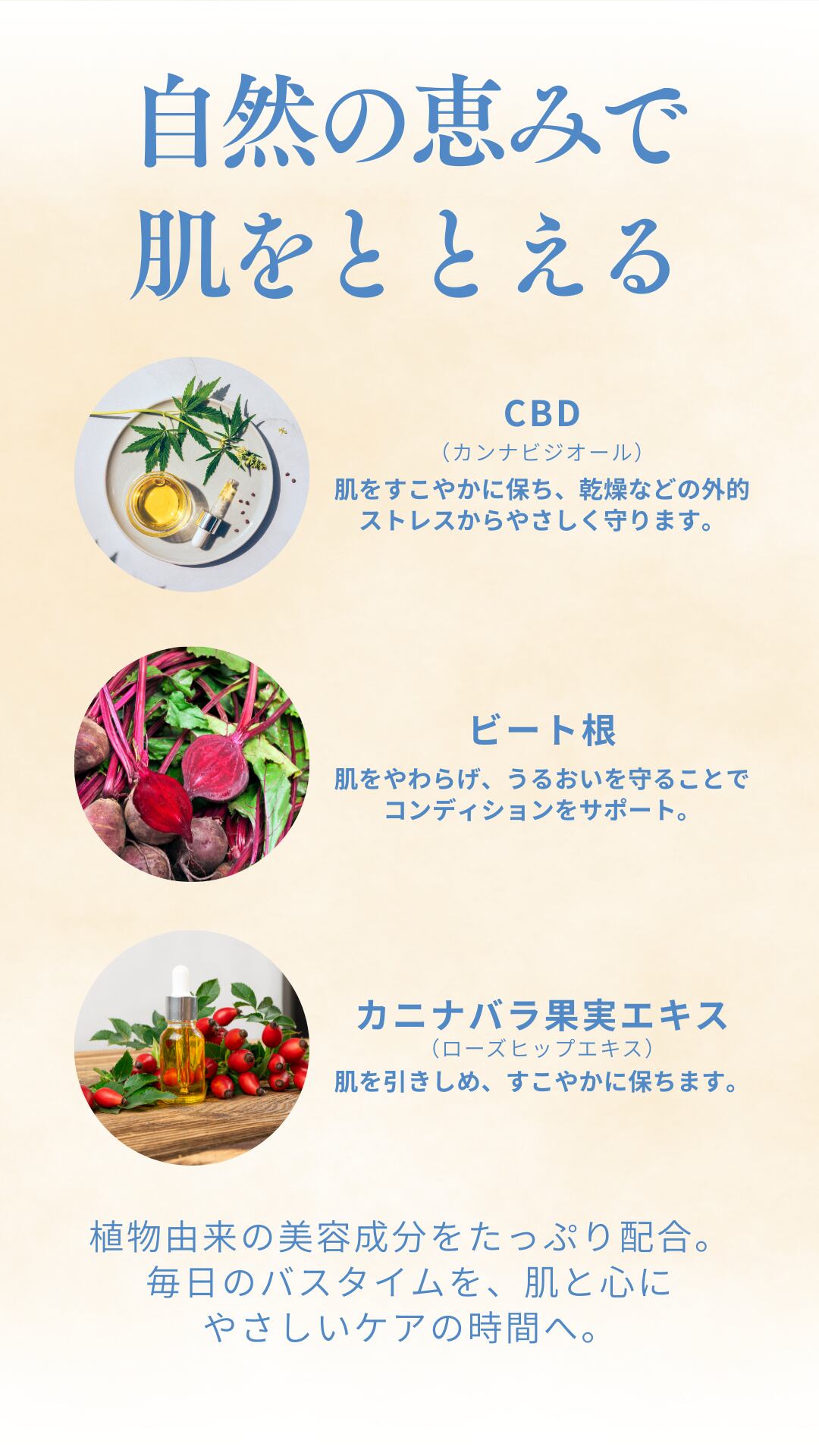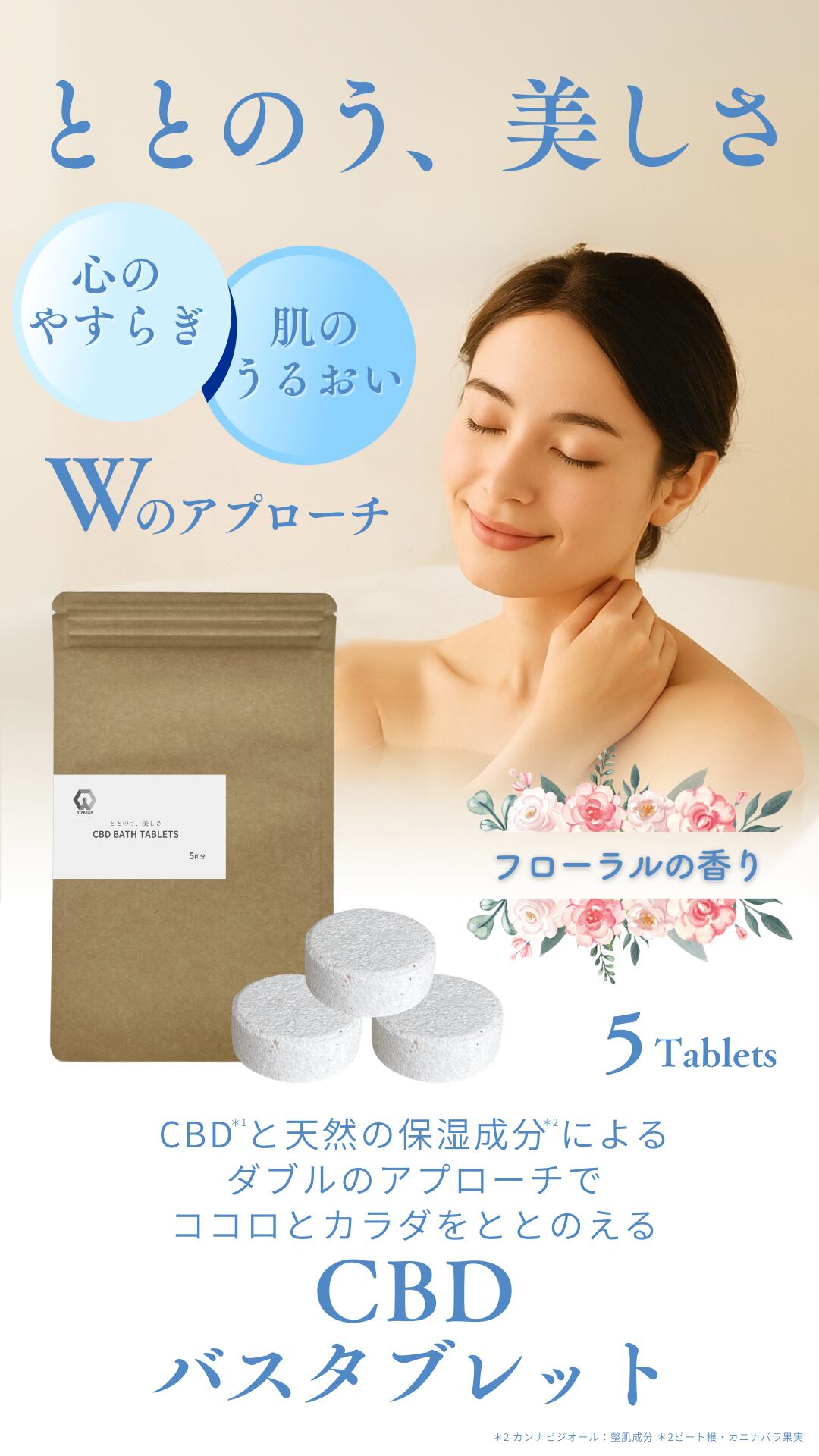 CBD(カンナビジオール)と植物由来の保湿成分を配合したバスタブレットです。